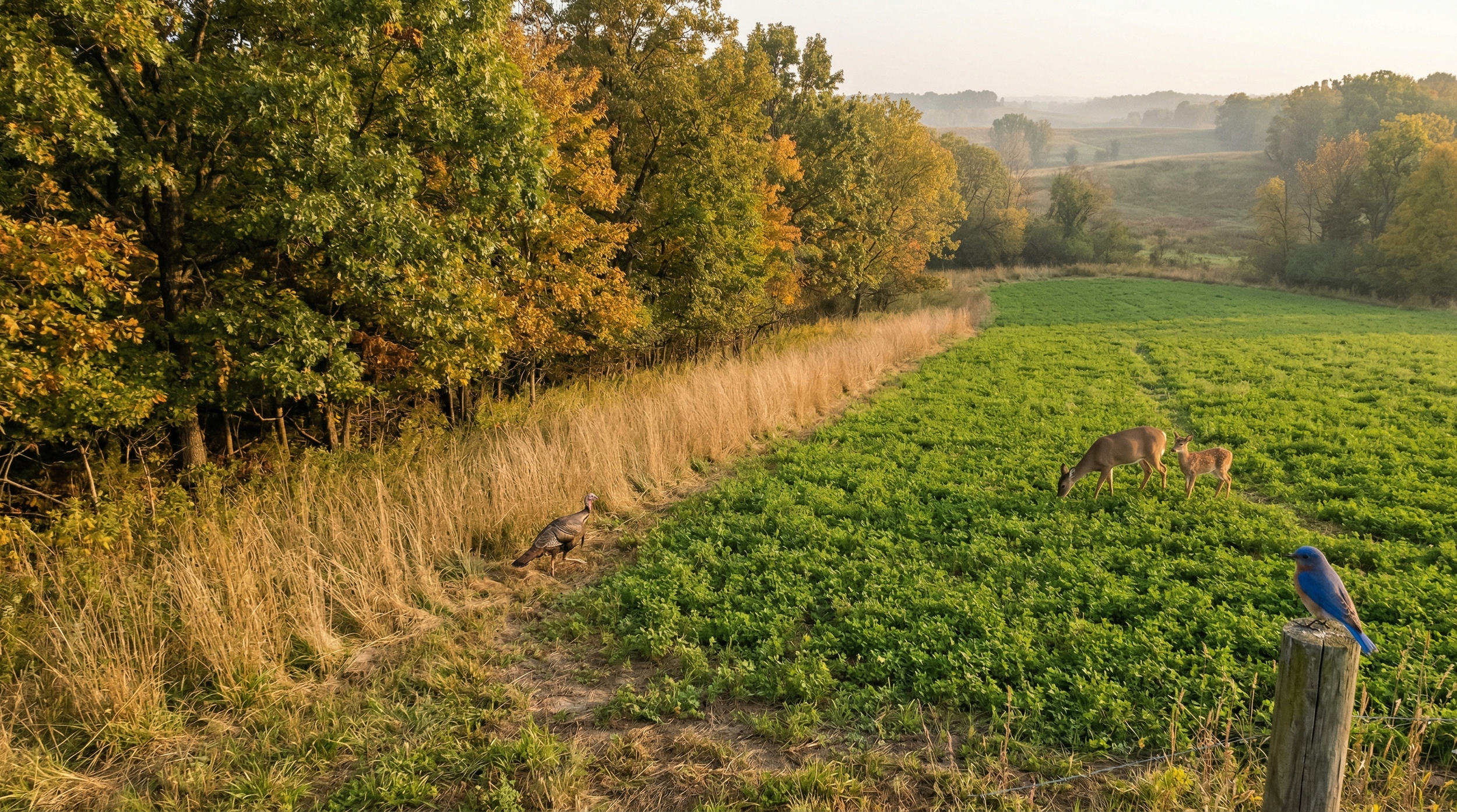 Good land management does more than hold deer on your property; it builds an ecosystem that supports turkey, upland birds, pollinators, and the full chain of wildlife that makes a property thrive. Our planting guides, seed recommendations, and habitat strategies come from decades of hands-on fieldwork, not textbook theory. Whether you're putting in your first clover plot or designing a property-wide plan with switchgrass bedding cover, brassica kill plots, and native grass restoration, this is where you start.