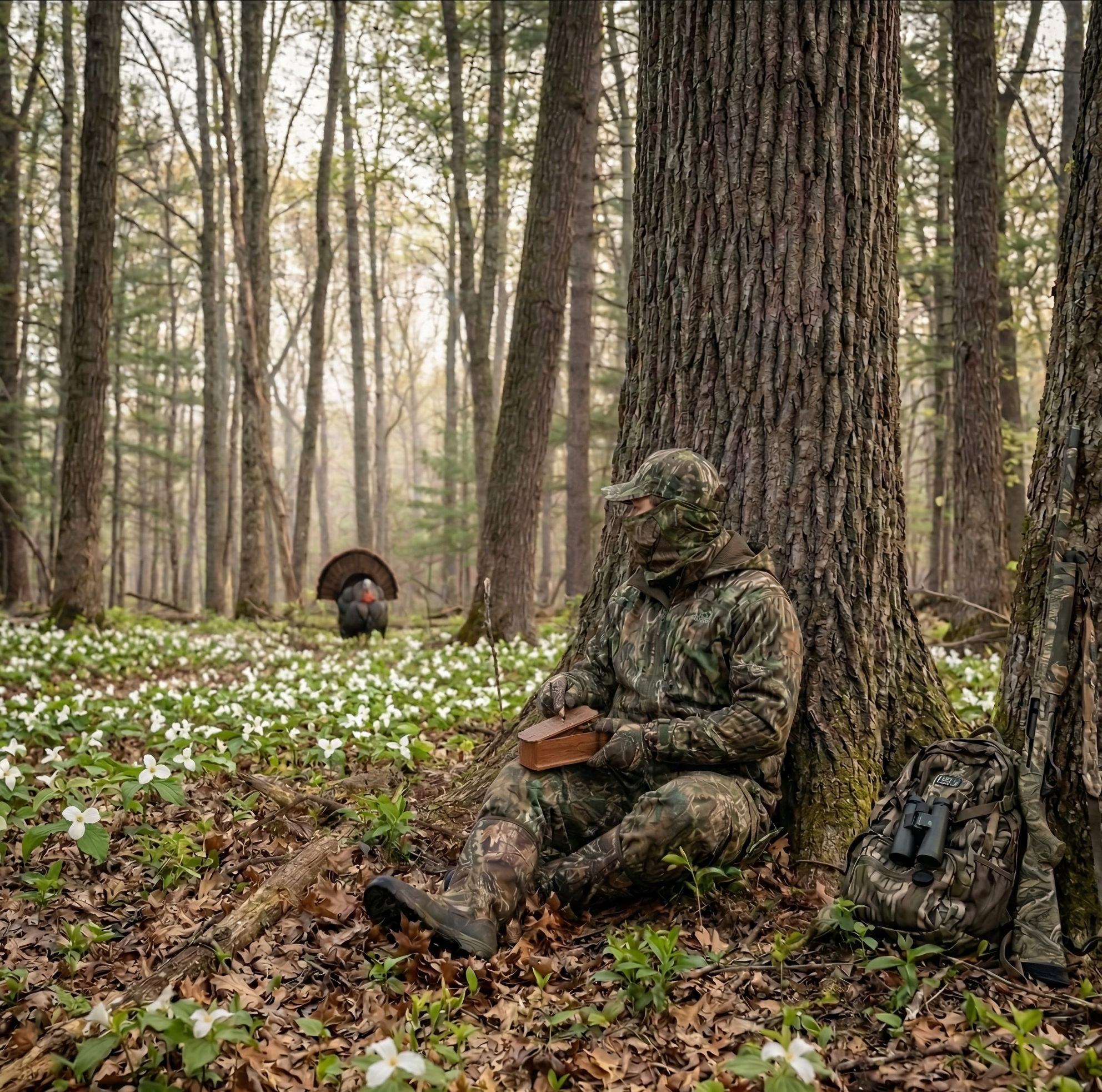 For timber hunting and covering ground to locate birds, go mobile. A lightweight turkey vest with a built-in seat pad lets you sit against a tree anywhere. The Tenzing or Alps OutdoorZ turkey vests give you a seat, call pockets, and storage without bulk.